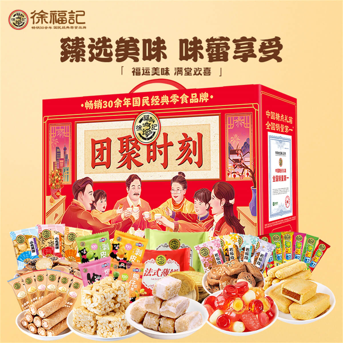 团聚时刻 发布时间:2025-01-04点击:21 团购优惠请联系我们 内容物:1:徐福记酥心糖150克2:徐福记沙琪玛418克3:徐福记新年什锦糖120克4:100%果汁软糖120克5:米格玛110克6:徐福记凤梨酥200克7:雀巢咖啡乐(罐装)92g8:徐福记综合饼点200克*2袋(小丸煎饼、岩板烧、京屋果子、卷心酥、法式薄饼等) 请填写您的信息 提交留言