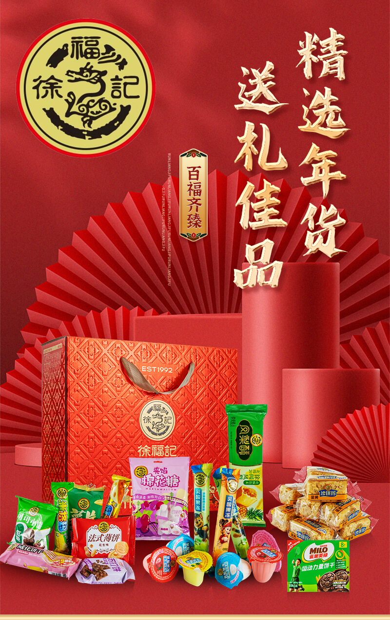 百福齐臻 发布时间:2025-01-04点击:29 团购优惠请联系我们 内容物:徐福记包馅酥凤梨味袋装69g徐福记沙琪玛松软蛋黄味275g雀巢美禄运动力量夹心饼干巧克力味盒装72g徐福记夹馅棉花糖袋装64g徐福记乳酸果冻(草莓、白桃、酸奶、菠萝)500g徐福记混合银致糕点(苏打饼干、薯片、米果卷、威化饼干、低糖可可饼干、法式薄饼)250g 请填写您的信息 提交留言 Tag标签: 上一篇:没有了! 下一篇:欢天喜地