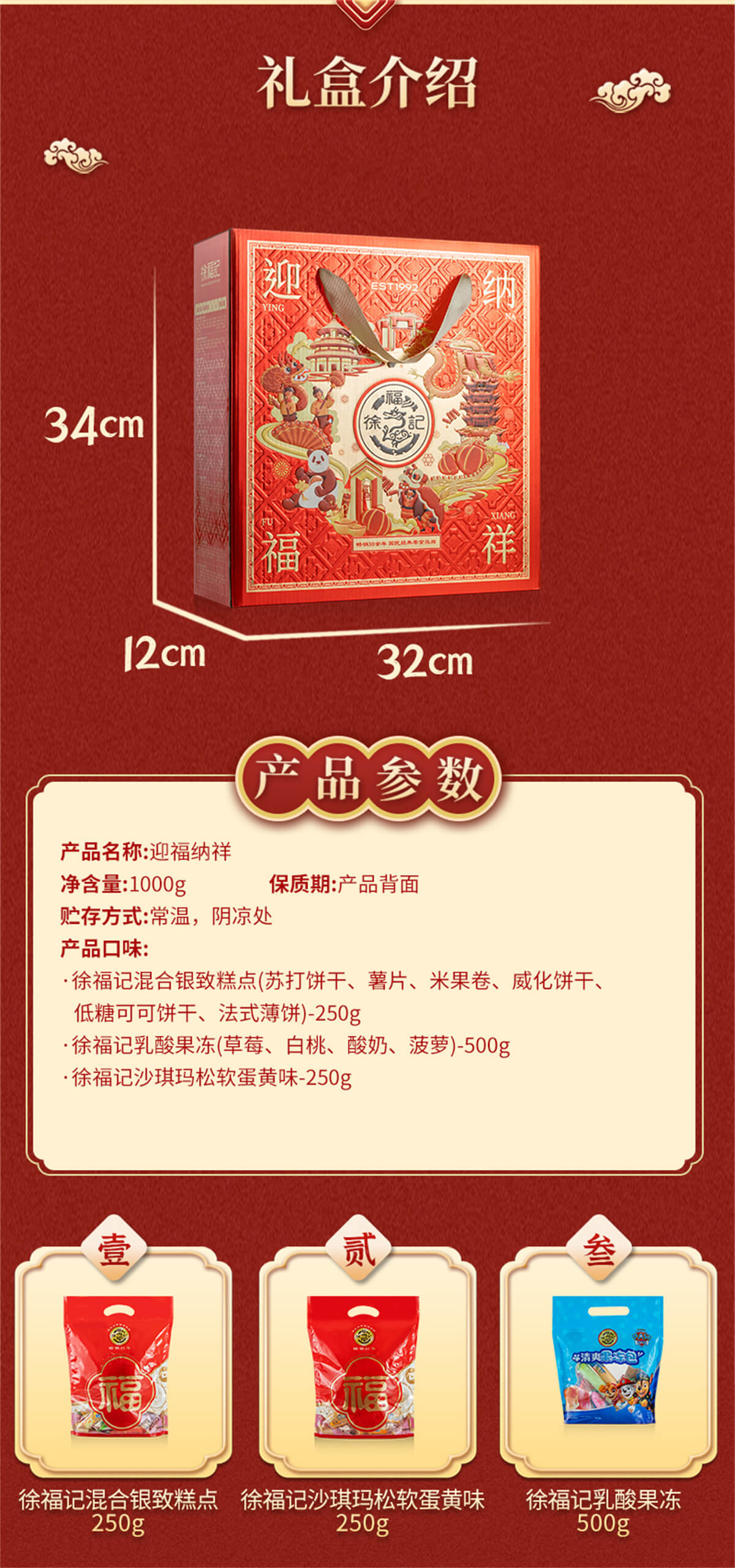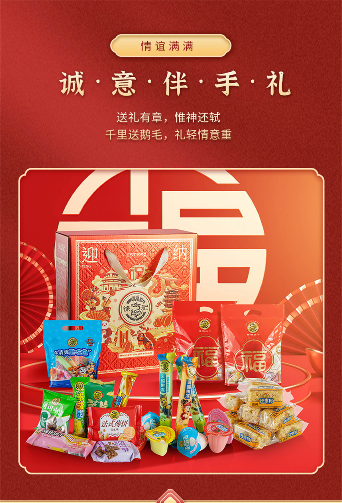 迎福纳祥 发布时间:2025-01-04点击:18 团购优惠请联系我们 内容物:徐福记混合银致糕点(苏打饼干、薯片、米果卷、威化饼干、低糖可可饼干、法式薄饼)250g徐福记乳酸果冻(草莓、白桃、酸奶、菠萝)500g徐福记沙琪玛松软蛋黄味250g 请填写您的信息 提交留言 Tag标签: 上一篇:羌福双至 下一篇:中国糖果(铁盒)